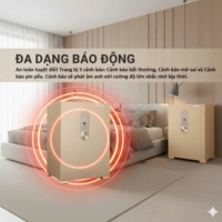 Cảnh báo Đa chiều: Tự động phát âm thanh cảnh báo khi có hiện tượng nhập sai mã/vân tay nhiều lần, cạy phá, hoặc di dời két.