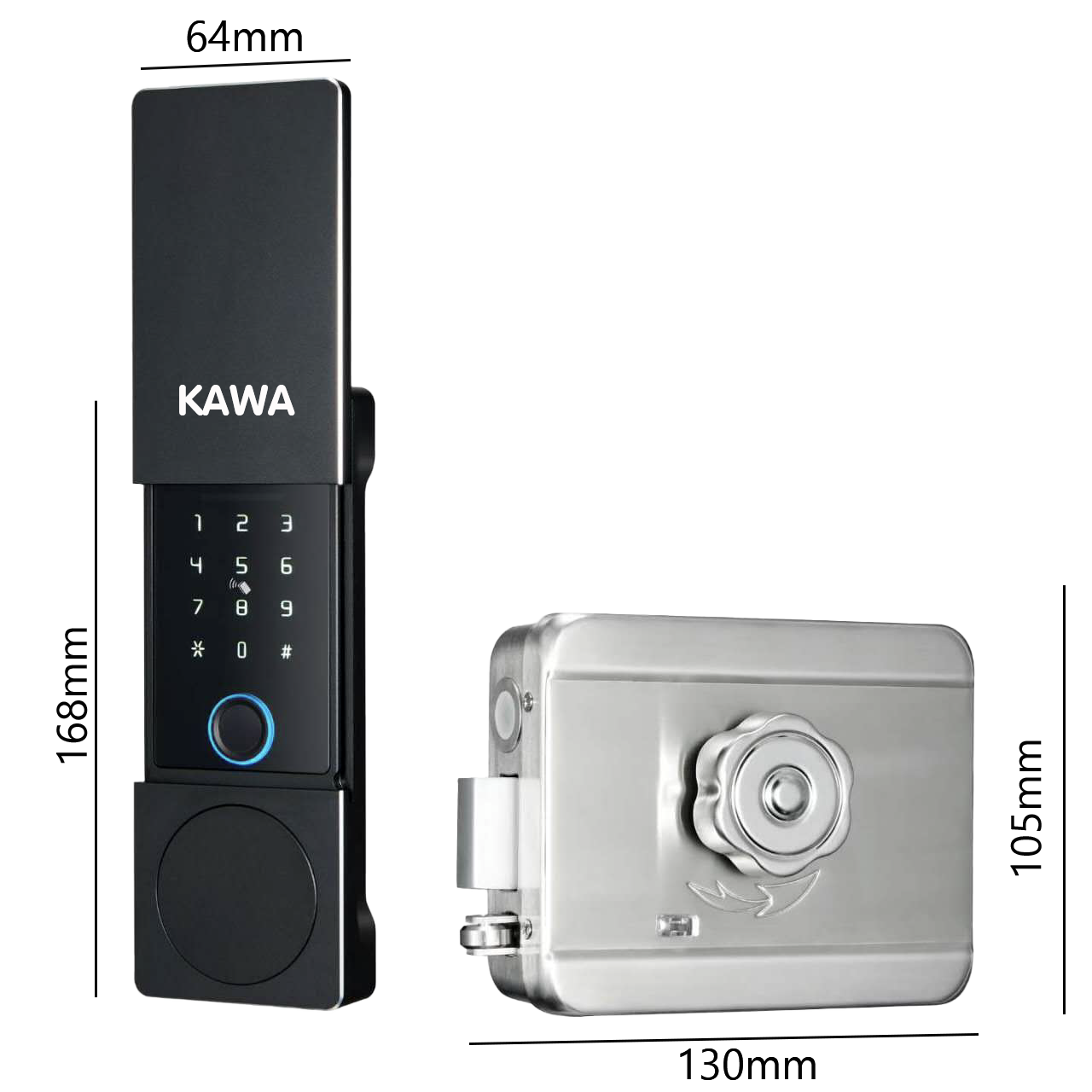 - Khóa vân tay KAWA KC01 phù hợp lắp cho cửa cổng sắt hộp, cửa nhôm đúc, cửa inox hộp